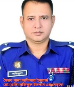 ভৈরব থানার অফিসার ইনচার্জ মোঃসফিকুল ইসলামএর নেতৃত্বে এসআাই মুহাম্মদ মাজহারুল ইসলাম ওসঙ্গীয় ফোর্স সহ