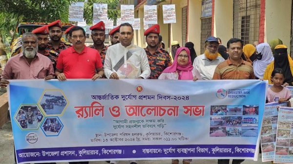 মুহাম্মদ কাইসার হামিদ, কুলিয়ারচর প্রতিনিধিঃ “আগামী প্রজন্মকে সক্ষম করি দুর্যোগ সহনশীল ভবিষ্যৎ গড়ি” এ প্রতিপাদ্য বিষয়কে সামনে রেখে কিশোরগঞ্জের কুলিয়ারচরে আন্তর্জাতিক দুর্যোগ প্রশমন দিবস-২০২৪ উদযাপিত হয়েছে। এ উপলক্ষে রোববার (১৩অক্টোবর)