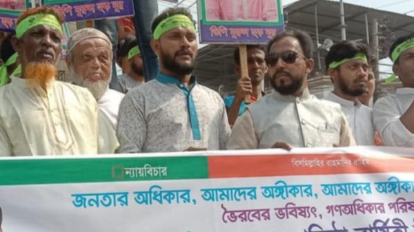 ভৈরব প্রতিনিধঃ রাজনৈতিক দল হিসেবে আওয়ামী লীগ ও অঙ্গ সংগঠনকে নিষিদ্ধ ও ২০০৬ সালের অক্টোবর মাসে আন্দোলনের নামে লগীবৈঠার ও তান্ডব ও নৃশংস হত্যাকান্ডের বিচার দাবীতে ভৈরবে বিক্ষোভ সমাবেশ করেছে