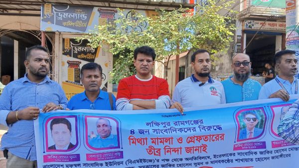ভৈরব প্রতিনিধিঃ সাংবাদিকদের বিরুদ্ধে হামলা মামলার প্রতিবাদে ভৈরবে সাংবাদিকদের মানববন্ধন অনুষ্ঠিত হয়েছে বাংলাদেশ মফস্বল সাংবাদিক ইউনিয়ন ভৈরব উপজেলা শাখার আয়োজনে আজ বৃহস্পতিবার দুপুরে ভৈরব,ময়মনসিংহ আঞ্চলিক মহাসড়কের ভৈরব লোকাল বাসষ্ট্যান্ডে জিটিভি