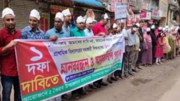 ভৈরব প্রতিনিধঃ সহকারি শিক্ষকদের আয়োজনে শুক্রবার সকালে ভৈরব,কিশোরগঞ্জ ময়মনসিংহ আঞ্চলিক মহাসড়কের ভৈরব উপজেলার সামনে মানববন্ধন ও বিক্ষোভ মিছিল করেছে বিভিন্ন প্রাথমিক বিদ্যালয়ের শিক্ষকরা,মানববন্ধনে উপস্থিত ছিলেন,উপজেলার সহকারী শিক্ষকদের পক্ষে প্রধান