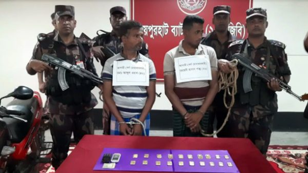 নিরেন দাস,জয়পুরহাট জেলা প্রতিনিধি: জয়পুরহাটের সীমান্ত ঘেঁষা ভারতে পাচারকালে প্রায় ২ কোটি ৩০ লাখ টাকা মূল্যের প্রায় ২ শত ভরি ওজনের ২০টি স্বর্ণের বারসহ ২ জন সোনা পাচারকারীকে আটক করেছে
