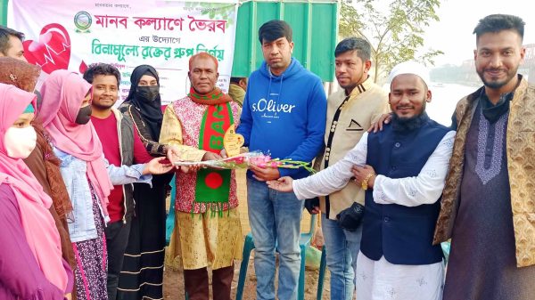 আজ ভৈরবে মানবকল্যাণে ভৈরব সংগঠনের আয়োজনে বিনামুল্যে রক্তের গ্রুপ নির্ণয় ভৈরব প্রতিনিধ মোঃ আলাল উদ্দিন। আজ ১৯ জানুয়ারি ২০২৪ খ্রিঃ শুক্রবার বিকেলে মেঘনা নদীর তীরে ত্রীসেতুর নিচে মানবকল্যাণে ভৈরবের আয়োজনে