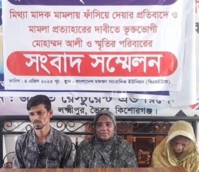 ভৈরব প্রতিনিধিঃ ভৈরবে পুলিশের দাবীকৃত ১ লাখ টাকা না দেয়ায় দম্পতি মোহাম্মদ আলী ও তার স্ত্রী স্মৃতি বেগমের বিরুদ্ধে মিথ্যা মাদক মামলা দিয়ে হয়রানীর প্রতিবাদে সংবাদ সম্মেলন ও সুষ্ঠু তদন্ত