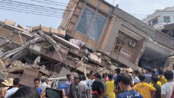 ঢাকা প্রতিনিধিঃ মিয়ানমারের মধ্যাঞ্চলে শুক্রবার,২৮ মার্চ,দুপুরে আঘাত হেনেছে শক্তিশালী ভূমিকম্প,জার্মানির জিওসায়েন্স ইনস্টিটিউট জিএফজেডের তথ্য অনুযায়ী, ভূমিকম্পটির মাত্রা ছিল ৭ দশমিক ৭ এবং কেন্দ্র ছিল ভূপৃষ্ঠ থেকে ১০ কিলোমিটার গভীরে, ভূমিকম্পের